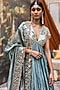Featuring a teal blue and sea green anarkali in gota and tissue brocade base with mirror hand embroidery. It is paired with a hand embroidered dupatta. Accentuate with kundan polki jewellery, block heels and a sleek clutch for an effortless ethnic look, perfect for a festive, sangeet or engagement ceremonies.