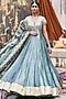 Teal Blue & Sea Green Tissue Mirror Embroidered Anarkali Set