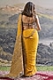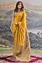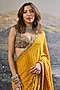 Featuring a yellow saree in crepe base. It is paired with a plum silk blouse having hand embroidery. Accentuate it with statement jewellery, a coordinated clutch and block heels for a regal ethnic look, perfect for haldi functions or grand pooja ceremonies.