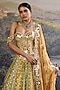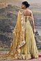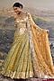 Featuring a yellow and green paneled lehenga in tissue base. It is paired with a long mirror corset and an embroidered dupatta. Accentuate it with statement kundan or gold jewellery, a sleek bun and embellished heels for a regal ethnic look, perfect for wedding, engagement or sangeet ceremonies.