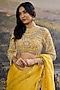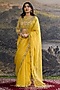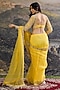 Featuring a yellow saree in raw silk base with embroidery. It is paired with an embellished blouse. Accentuate it with statement jewellery, a coordinated clutch and block heels for a regal ethnic look, perfect for weddings, haldi functions or grand pooja ceremonies.