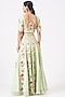 Featuring a mint kalidar lehenga in silk base with floral embroidery and a cancan. It is paired with a matching padded blouse and a silk organza dupatta having embroidery.