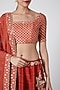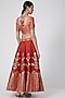 Featuring an orange kalidar lehenga in viscose silk, banarasi chanderi, viscose georgette, and shantoon base with patchwork and banarasi butti floral embroidery. It is paired with a matching blouse and a dupatta.