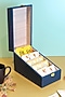 Introducing this multi-colored tea box. Our royal tea box comes in a different slant cuboidal shape, giving it a modern feel. Keeping in tandem with sustainability, the tea box is made from MDF and is lacquered beautifully with our Mustang print, which adds a pleasing gloss and gives a durable seal protecting it from the inside out. This tea box is designed for storing and organizing tea bags or loose tea leaves.