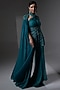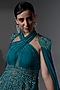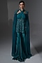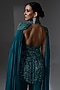 Featuring an aqua teal short kurta in organza, shantoon and crepe base with a halter neckline, an attached drapes on both sides and hand embroidery. It is paired with sharara pants having a cowl detail. Style with diamond earrings, sleek heels and an embellished clutch for an effortlessly glamorous look. Perfect for cocktail parties, receptions, or evening celebrations.