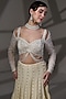 Featuring a butter yellow ruffled lehenga in organza, shantoon and satin base. It is paired with a blouse having full sleeves, cascading tassels and hand embroidery. Style with diamond earrings, sleek heels and an embellished clutch for an effortlessly glamorous look. Perfect for cocktail parties, receptions, or evening celebrations.