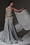 Featuring a misty lilac structured corset in organza, shantoon and crepe base with hand applique and aari embroidery. It is paired with sharara pants and a dupatta. Style with diamond earrings, sleek heels and an embellished clutch for an effortlessly glamorous look. Perfect for cocktail parties, receptions, or evening celebrations.