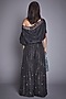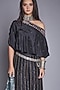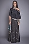 Featuring a black skirt in crepe silk base with silver thread work. It is paired with a matching one shoulder blouse.