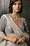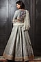 Featuring a silver lehenga in raw silk base with silver thread hand embroidery. It is paired with a contrasting aegean blue blouse and an organza dupatta having silver textured border.