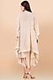 Featuring a cream and gold jacket in assam silk base with embroidery. It is paired with matching modal satin draped dhoti pants, and a lacy belt.