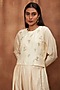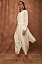 Featuring a cream top in maheshwari silk and modal satin base. It is paired with matching draped dhoti pants.