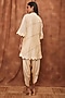 Featuring a cream A-line kurta in maheshwari silk and modal satin base with scallop detailing. It is paired with matching dhoti pants.