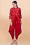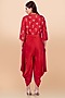 Featuring a red cowl draped jumpsuit in maheshwari silk and modal satin base.