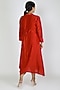 Featuring a red cowled dress in maheshwari silk and modal satin base with zari embroidery. It has full sleeves.