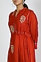 Red Embroidered Cowled Dress