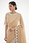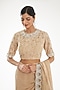 Featuring a beige lehenga saree in silk, georgette and chandelier base with sequins, pearl, thread and cutdana work. It is paired with a chandelier blouse having handwork and a georgette drape pallu. Accentuate it with statement jewellery and heels for a sangeet or engagement ceremony.