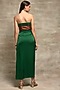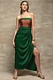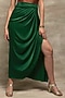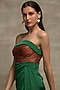 Featuring an emerald green draped dress in silk zari brocade and poly satin base.