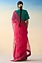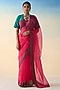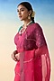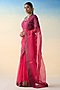 Featuring a fuchsia pink saree in organza base with embroidery. It is paired with an organic cotton stitched underskirt. Accentuate it with statement earrings and heels for festive occasions.