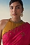 Featuring a magenta saree in silk base with embroidery. It is paired with an organic cotton stitched underskirt. Accentuate with statement earrings and heels for festive occasions.