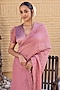 Featuring a pink saree in chanderi base with aari and zardosi work. It is paired with a silk blouse having balloon sleeves and a cotton underskirt. Accentuate with statement earrings and heels for a festive occasion.