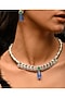 Featuring a white gold finish enameled necklace studded with green onyx, zirconia diamond and chalcedony drop, set in 92.5 sterling silver.