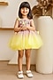 Brown & Yellow Net Butterfly Handwork Shaded Dress For Girls