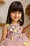 Featuring a brown and yellow shaded dress for girls in net and silk base with butterfly handwork. It is paired with a detachable drape and a hairpin. Style it with cute hair accessories and sandals for birthday parties or special occasions.