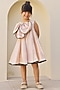 Champagne Cream Satin Pearl Work Dress For Girls