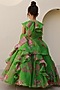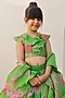 Featuring a green lehenga for girls in silk and organza base with floral print. It is paired with a blouse and a ruffled dupatta. Accessorize it with matching hair accessories and sandals for a stylish ensemble, ideal for any festive occasion or wedding ceremony.