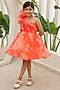 Featuring an orange one-shoulder dress for girls in organza, net and silk base with print. It is paired with a hair accessory. Accessorize it with a cute sling bag and sandals for a stylish ensemble, ideal for any festive occasion or birthday party.