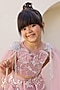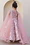 Featuring a pink lehenga for girls in sequins and satin base with embroidery. It is paired with a blouse having an attached net cape dupatta on the shoulder. Style it with sandals and hair accessories for a festive occasion or wedding ceremony.