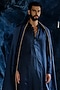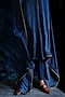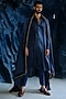 Featuring a charcoal blue anarkali kurta in linen silk base. It is paired with churidar and a stole. Style it with mojaris for a festive occasion, wedding or engagement ceremony.