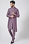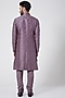 Featuring an english purple sherwani in cotton silk base with dabka and zari placement embroidery. It is paired with a matching kurta and pants.