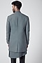 Featuring a grey shrug in textured cotton base with different cuff. It is paired with a matching asymmetric kurta and trousers.