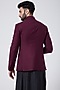 Featuring a wine bandhgala jacket in terry rayon base with embroidery. It is paired with an asymmetric kurta and trousers. It is paired with asymmetric kurta and trousers. Perfect attire for a wedding or engagement ceremony.