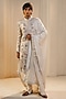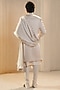 Featuring an ivory sherwani in linen silk base with handpainted and hand embroidery. It is paired with a pleated anarkali kurta and churidar. Style it with a pair of mojaris for a wedding or engagement ceremony.