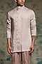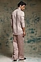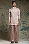 Featuring a mauve kurta in linen silk base with high collar, silver buttons and pintuck detailing. It is paired with trousers. Style it with pants and sandals for a festive occasion, intimate pooja or sangeet ceremony.