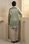 Featuring a mint green kurta in linen silk base with patchwork and embellishments. It is paired with ivory trousers. Style it with a pair of mojaris for a festive occasion, cultural event, wedding or engagement ceremony.