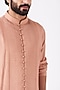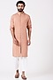 Featuring an old rose kurta in twill base with pintucks and hand embroidery. It is paired with contrasting trousers.