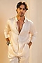 Featuring a pearl ash kurta in linen silk base. It is paired with trousers. Style it with a pair of mojaris for a festive occasion, cultural event, wedding, sangeet or engagement ceremony.
