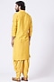 Featuring a yellow kurta in slub silk base with buttons detail. It is paired with dhoti pants. Perfect attire for festive occasion or haldi ceremony, exuding traditional charm and elegance.