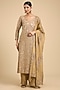 Beige Shimmer Tissue Jaal & Tikki Work Straight Kurta Set