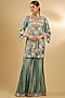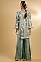 Featuring a blue tunic in handloom silk base with dori and threadwork. It is paired with semi-flared pants. Accentuate it with statement jewellery and heels for a festive look.