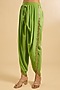 Featuring a green tunic in silk organza and crepe base with mirror work. It is paired with tulip pants and a dupatta. Accentuate it with statement jewellery and heels for a festive occasion or pooja ceremony.