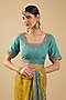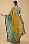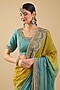Featuring a mustard and blue shaded saree in chiffon base with mirror embroidery. It is paired with a blouse. Style this exquisite ensemble with luminous diamond jewellery, heels and refined makeup for a timeless look perfect for festive occasion, sangeet or pooja ceremonies.
