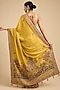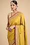 Featuring a mustard yellow saree in silk base with embroidery. It is paired with a blouse. Accentuate it with kundan polki jewellery and embellished heels for daytime weddings or haldi ceremony.
