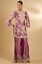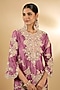 Featuring an onion pink tunic in handloom silk base with moti and threadwork. It is paired with semi-flared pants. Accentuate it with statement jewellery and heels for a festive look.