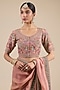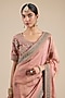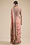 Featuring an onion pink saree in shimmer tissue base, adorned with moti and thread embroidery. It is paired with an embroidered blouse. Accentuate it with polki earrings and wedges for festive occasions or sangeet ceremony.