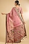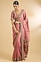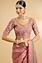 Featuring an onion pink saree in shimmer tissue base. It is paired with a blouse. Accentuate it with statement jewellery and heels for a sangeet ceremony.