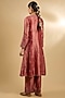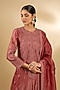 Featuring an orange tunic in handloom silk and organza base with threadwork. It is paired with straight pants and a dupatta. Accentuate it with statement jewellery and heels for a festive look.